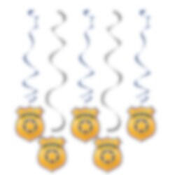 Hängande dekorationer med tuffa polismotiv. Häng upp dessa i kalasrummet för att skapa en rolig stämning. Två av dekorationerna är ca 99 cm långa och tre av dekorationerna är ca 76 cm långa.