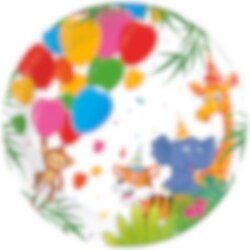 8 st. papptallrikar med söta och färgglada motiv av djungeldjur och ballonger. Tallrikarna är 23 cm i diameter och är tillverkade av FSC-märkt papper.