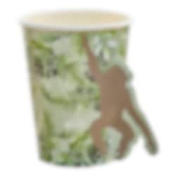 8 st. pappmuggar i en grön färg med motiv av palmblad och en cool pop-out apa i 3D från det fina temat Let's Go Wild. Duka fram dessa till djungelfesten för en riktigt snygg look.