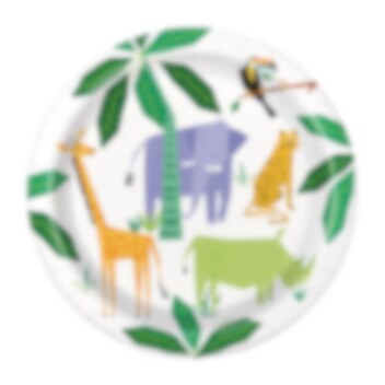 8 st. papptallrikar med motiv av söta djungeldjur. Passar utmärkt till barnkalaset med djungeltema. Tallrikarna är ca 22 cm i diameter.