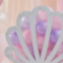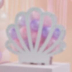 Riktigt läcker ballongdekoration (ballongbox) som är formad som en snäcka i matt vit färg. Fyll boxen med färggranna ballonger inför sjöjungfrukalaset. Ballongboxen är ca 60 cm hög och ca 65,5 cm bred.