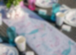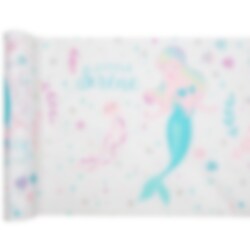 Skapa en magisk dukning på ditt sjöjungfrukalas med denna bordslöpare som har motiv av stora och små sjöjungfruar och andra havsrelaterade saker. Matchar jättefint med våra andra tillbehör i samma sjöjungfrutema så som tallrik, mugg och servett.