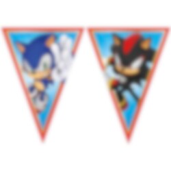 Flaggirlang av papper med motiv från Sonic the Hedgehog. En snygg dekoration att hänga upp i kalasrummet när det är dags för festligheter.