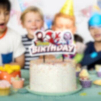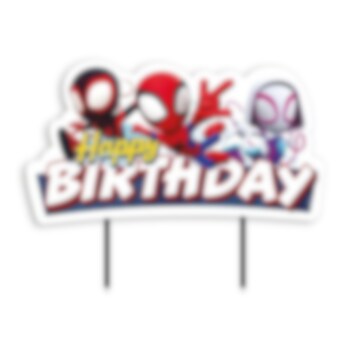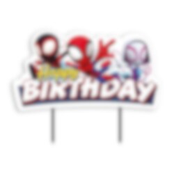 Cake topper av papp med texten "Happy Birthday" och många roliga motiv från Spidey and His Amazing Friends! Höjd ca 13 cm.