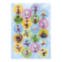 20 st. muffinsbilder av sockerpasta med bilder från Spidey och hans fantastiska vänner. De ätbara muffinsbilderna blir till fina dekorationer på cupcakes eller födelsedagstårtan. Muffinsbilderna är ca 3,4 cm i diameter och färdiga att läggas direkt på muffinsen. Bilderna förvaras torrt och svalt och är hållbara över ett år.