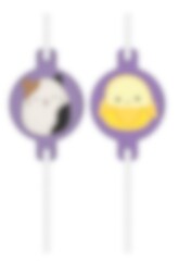4 st. pappsugrör med söta motiv från Squishmallows. Sugrören är ca 21 cm långa och motiven är ca 6,5 cm i diameter.