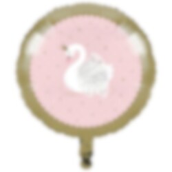 Folieballong i färgerna, rosa, guld och vit samt med motiv av en fin svan. En imponerande dekoration att pynta med inför kalaset med Stylish Swan som tema. Ballongen blir ca 45 cm i diameter uppblåst och blåses lättast upp med helium.