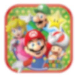 8 st. fina fyrkantiga assietter med motiv av Mario, Luigi, Prinsessan Peach och Toad från Super Mario Bros. Bjud på goda bullar, kakor etc. på dessa assietter till kalaset. Assietterna är gjorda av papp och är ca 18 cm i diameter.