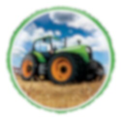 Rund folieballong med häftigt traktormotiv. Folieballongen är ca 45 cm i diameter uppblåst.