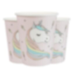 10 st. supersöta pappmuggar i en rosa färg med motiv av en enhörning från enhörningstemat. Muggarna är ca 9,7 cm höga och rymmer 270 ml.