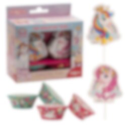 Baka goda muffins och servera fram dem i fina formar med supersöta toppers till Enhörningskalaset. Detta set innehåller 24 st muffinsformar (5 cm i botten) samt 24 st toppers med fint Unicornmotiv. Dessa toppers är i papp och är ca 5 cm stora.