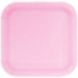 14 st. fyrkantiga papptallrikar i vacker ljusrosa färg. Tallrikarna är tillverkade av miljövänligt papper och är 22,2 x 22,2 cm stora.