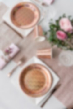 Glittrande bordslöpare i roséguld att ha på bordet när det är dags för fest. Bordslöparen är 28 bred och 3 meter lång och är tillverkad i polyester.