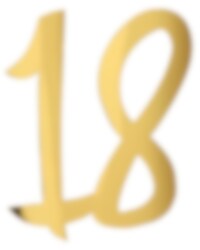 4 st. dekorationer av talet 18 gjorda av guldfolierad papp. De här dekorationerna har många användningsområden och kan kombineras med andra saker i 18-årstema. Dekorationerna är 18 x 20 cm stora.