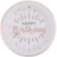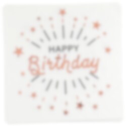 10 st. vita servetter med otroligt snyggt motiv av texten "Happy Birthday" som är omringat av stjärnor i roséguld. Servetterna är 2-lagers och är ca 33 x 33 cm stora utvikta.