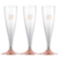 6 st. tjusiga och praktiska engångsglas i Champagne-stil. Plastglasen är trevliga att både duka med och mingla med dina gäster med på 30-årsfesten. Glasen rymmer 14 cl. och står på en fot av roseguld och har talet "30" tryckt upptill.