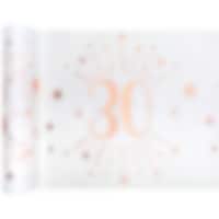 10 st. vita servetter med roseguldglittriga mönster och talet "30". De här servetterna är väldigt dekorativa när du dukar upp till en 30-årsfest. Servetterna har tre lager och känns lyxiga. Outvikta har dem ett mått av 16,5 x 16,5 cm.
