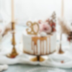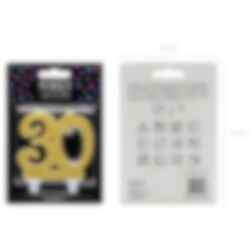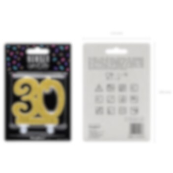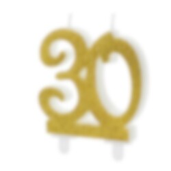 Fint tårtljus i glittrande guld att sätta i tårtan när det är dags att fira födelsedag. Tårtljuset föreställer siffran 30 och passar därför perfekt inför 30-årsfesten. Tårtljuset är 7,5 cm stort.