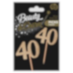 6 st. guldglittrande cake toppers att dekorera bakverk med till 40-årsdagen. Längd ca 10 cm.