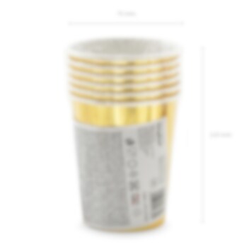 6 st. pappmuggar i en vacker guldmetallic färg och med den vita texten "40th Birthday!". Snyggt att duka fram på bordet inför 40-årsfesten. Dessa muggar rymmer ca 2,2 dl.