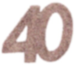 6 st. glittrande stora konfetti i roséguld att dekorera med på 40-årsfesten. Konfettin är formad som talet 40 och är 6 x 6 cm stora. De är tillverkade av papp.