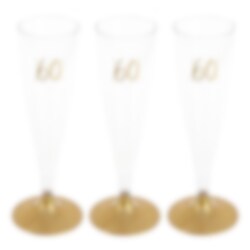 6 st. vackra och praktiska engångsglas i Champagne-stil. Plastglasen är trevliga att både duka med och mingla med dina gäster med på 60-årsdagen. Glasen rymmer 14 cl. och står på en fot av guld och har talet "60" tryckt upptill.