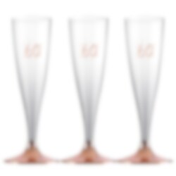 6 st. tjusiga och praktiska engångsglas i Champagne-stil. Plastglasen är trevliga att både duka med och mingla med dina gäster med på 60-årsdagen. Glasen rymmer 14 cl. och står på en fot av roseguld och har talet "60" tryckt upptill.
