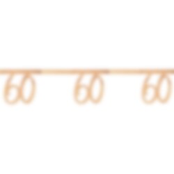 Dekorativ girlang av papp i glänsande roséguldfolie med talet 60. Girlangen är en utmärkt dekoration till din 60-årsfest och varje tal är 18 x 23 cm stort och själva girlangen är 250 cm lång.