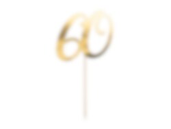 Tjusig tårtdekoration med motiv av siffran 60 i guldfolie. Perfekt att dekorera tårtan med inför 60-års kalaset. Tårtdekorationen är ca 19 cm stor.