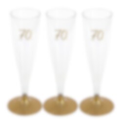 6 st. vackra och praktiska engångsglas i Champagne-stil. Plastglasen är trevliga att både duka med och mingla med dina gäster med på 70-årsfesten. Glasen rymmer 14 cl. och står på en fot av guld och har talet "70" tryckt upptill.