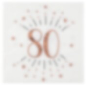 Roseguldglittriga servetter 80 år 10-pack