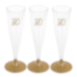 6 st. vackra och praktiska engångsglas i Champagne-stil. Plastglasen är trevliga att både duka med och mingla med dina gäster med på 80-årsfesten. Glasen rymmer 14 cl. och står på en fot av guld och har talet "80" tryckt upptill.