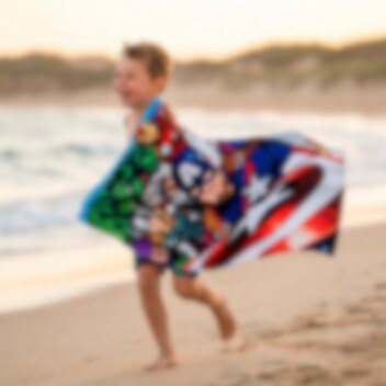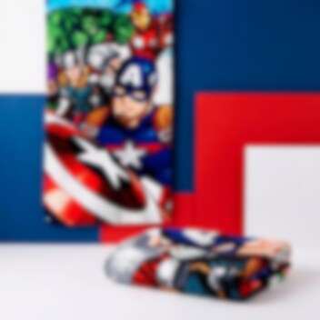 Låt dina hjältar ta med sig Avengers till stranden eller simhallen med denna färgstarka badhandduk. Motivet pryds av Captain America, Hulk, Iron Man och Thor i en kraftfull pose.