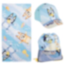 Ett perfekt set för alla Bluey-fans – redo för sommarens alla äventyr! Detta set innehåller en mjuk och absorberande handduk som passar perfekt efter badstunden, en snygg keps som skyddar mot solen och en praktisk gymnastikpåse som rymmer allt som behövs för en dag full av lek.
