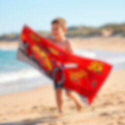 Denna häftiga badhandduk med Disney Bilar och Blixten McQueen är det perfekta tillbehöret för fartfyllda äventyr vid stranden eller poolen. Med sitt färgstarka motiv av nummer 95 på en lysande röd bakgrund blir den snabbt en favorit efter badet.