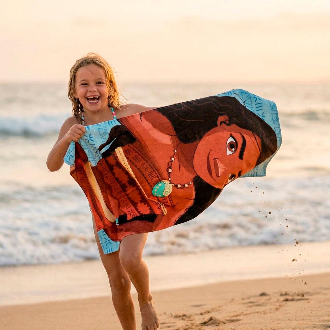 Med sina mått på 70 x 140 cm är den perfekt att svepa in sig i efter ett dopp eller att ligga och sola på. Ett måste för alla Moana-fans.