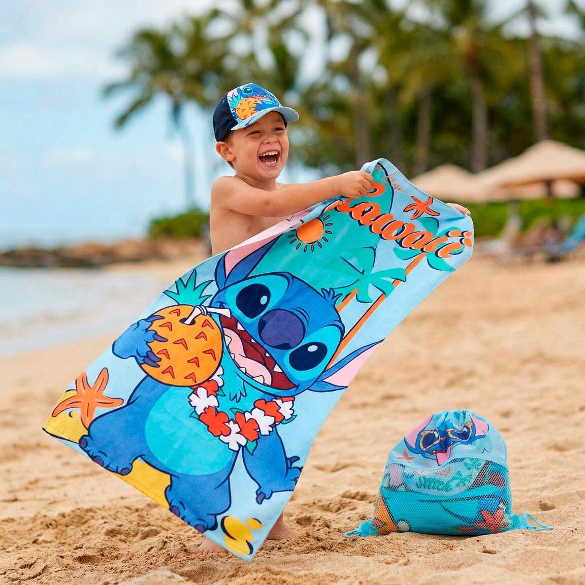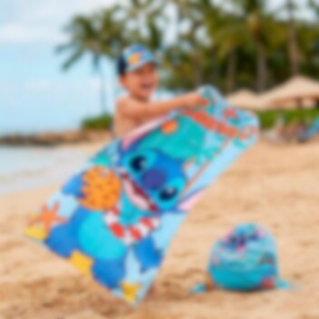 Ett färgstarkt och praktiskt set i Stitch-tema som innehåller handduk, keps och gympapåse - perfekt för strand, pool och sommarens alla äventyr. De lekfulla motiven ger en härlig känsla av sol, semester och bus.