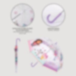 Ett paraply med Gabby’s Dollhouse-motiv är det perfekta sättet att göra regniga dagar roligare för ditt barn. Paraplyet har en diameter på cirka 71 cm och är tillverkat av högkvalitativt PoE och glasfiber. Det har 8 pinnar och öppnas manuellt. Med en snygg design med Gabby’s Dollhouse som motiv kommer detta paraply att bli en favorit bland alla små fans av serien.