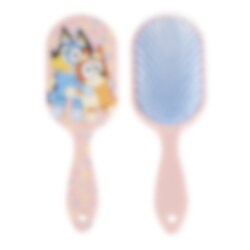 Gör morgonrutinen roligare med denna söta hårborste med motiv från Bluey! Borsten har en livfull rosa bas med färgglada strössel och ett tryck av Bluey och Bingo på baksidan. Den är skonsam mot håret och perfekt för daglig borstning. Hårborsten är ca 22 cm lång.