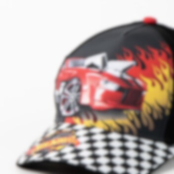 En tuff barnkeps i Hot Wheels-tema med häftigt motiv av en snabb sportbil och flammiga detaljer som ger en fartfylld och lekfull känsla. Perfekt för barn som älskar bilar och äventyr.
