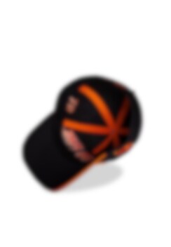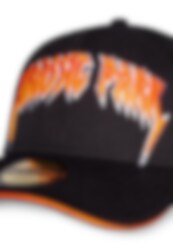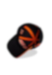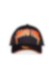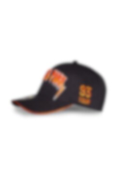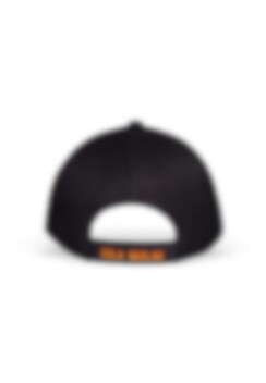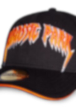 Cool baseball keps i svart färg med orangea nyanser och med den ikoniska Jurassic Park logon på framsidan av kepsen och motiv av dinosaurielogon på ena sidan.