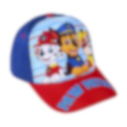 Vacker barnkeps i röda- och blå färgnyanser med motiv av de populära räddningshundarna Marshall, Chase och Rubble på från Paw Patrol. Kepsen är tillverkad av 65 % bomull och 35 % polyester.