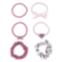 Detta fina 6-pack med hårsnoddar är ett perfekt tillskott för barn som älskar Mimmi Pigg! Förpackningen innehåller sex olika hårsnoddar i rosa, glitter och satin, inklusive en scrunchie med Mimmi-tryck och en med dekorativ rosett. En söt och färgglad mix för att variera stilen!