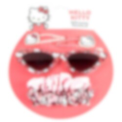 Solglasögon och håraccessoarer i Hello Kitty-tema som ger en söt och lekfull stil till soliga dagar. Setet innehåller stilfulla solglasögon tillsammans med matchande hårspännen och scrunchies, perfekt för barn som gillar klassiska och charmiga detaljer.