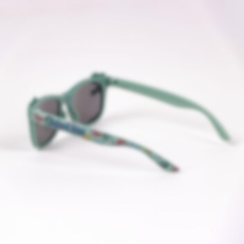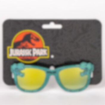 Premium solglasögon till barn med tuffa detaljer från Jurassic Park. På de fint mönstrade bågarna runt de tonade glasen finns en T-rex på vardera sida.