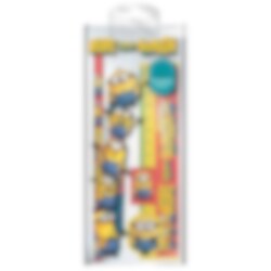 Ge skolstarten en rolig twist med detta Minionerna Skolset! Denna uppsättning innehåller allt som behövs för en framgångsrik skoldag: en blyertspenna, en bläckpenna, en linjal, en pennvässare och ett suddgummi, alla med färgstarka och roliga motiv av de älskade Minionerna.