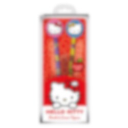 Gör skrivstunden extra söt med dessa charmiga Hello Kitty-pennor! Setet innehåller två färgglada blyertspennor dekorerade med motiv av Hello Kitty och suddgummin på toppen formade som hennes gulliga ansikte. Perfekta till skolan, skrivbordet eller som liten present till alla som älskar Hello Kitty.