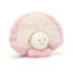 Denna strålande glada och charmiga mussla har en unik skönhet. Den har en mjuk pärla i mocka-imitation som vilar i dess vackert formade och härligt gosiga rosa skal. Broderade strålar på båda sidor av skalet ger denna skönhet en stilig struktur och den lilla foten låter musslan stå och visa upp sin leende pärla. Denna lilla skapare av havens skatt kanske inte har någon koppling till de legendariska sjöjungfrurna, men man kan aldrig vara säker. Handtvättas vid behov.