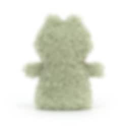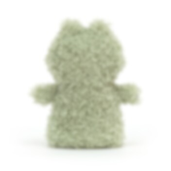 En urgullig och fluffig liten groda med charmigt rundad kropp. Den lite rufsiga pälsen har en härlig ljusgrön nyans och i det roliga ansiktet syns ett glatt litet leende . Denna lilla hoppande kompis älskar att kramas och inför dess söta små armar, gosigt mjuka kropp och söta uttryck säger inte många nej till det. Denna lilla älskling kan följa med nästan vart som helst på nästa äventyr eller en lugn mysstund och vill gärna hjälpa till med tröst samt stöd när det behövs. Handtvättas och plan- eller hängtorkas vid behov.