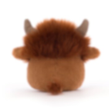 Gosig, gullig och lite udda är denna lilla bulle till skotsk höglands ko, med punkig frisyr, mjuka små horn, en liten svans med tofs, ett glatt litet leende och gulliga små ben i mörkbrun manchester. En uppmuntrande och kramgo liten kompis för resor och utflykter, eller den perfekta maskoten för ditt skrivbord. Handtvättas vid behov.